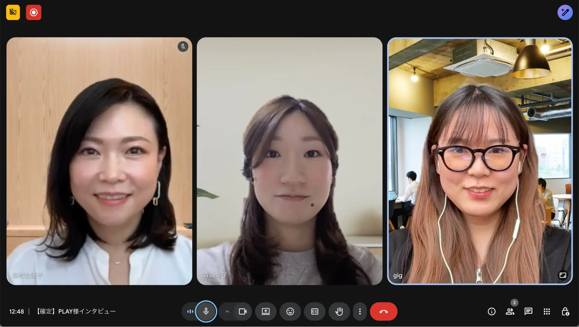 ▲(左から)インタビューにご協力いただいたPLAYの西村さま・森さま、プロジェクトを担当したGIG小笠原