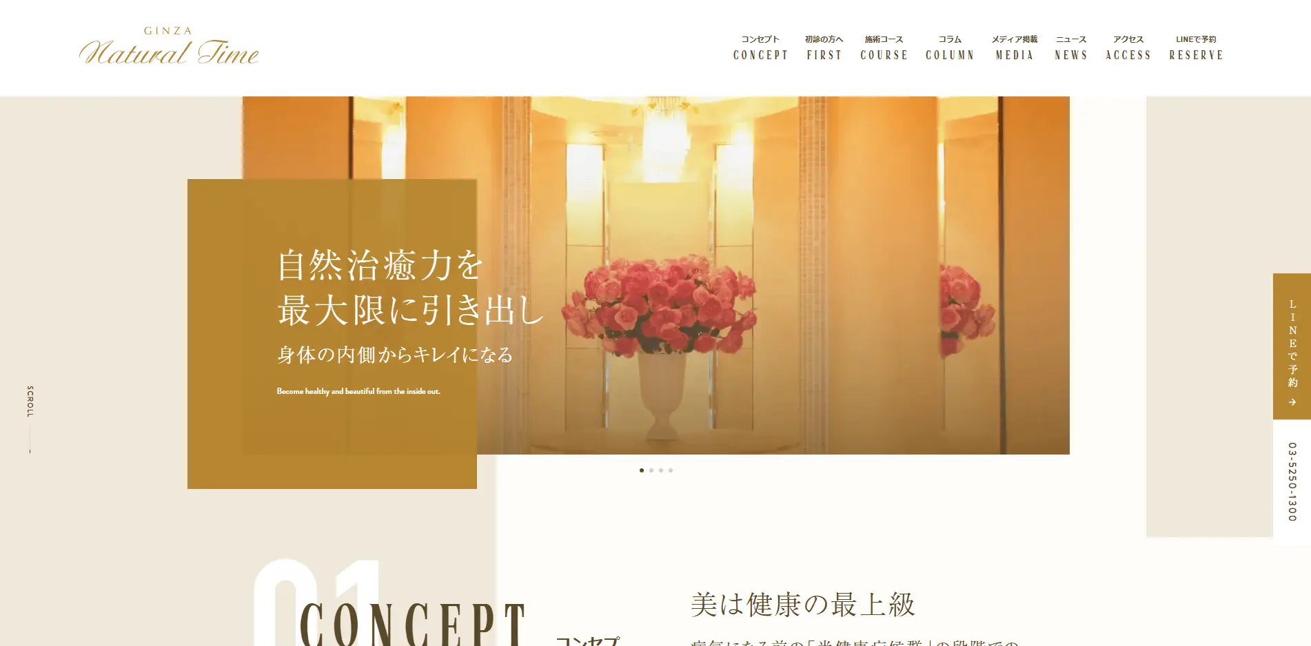 銀座ナチュラルタイム様は、銀座に店舗を構える会員制美容サロンを運営しています。コーポレートサイトからの予約が少ないことから、本格的なデジタルマーケティングに力を入れるため、GIGがリニューアルを担当することになりました。