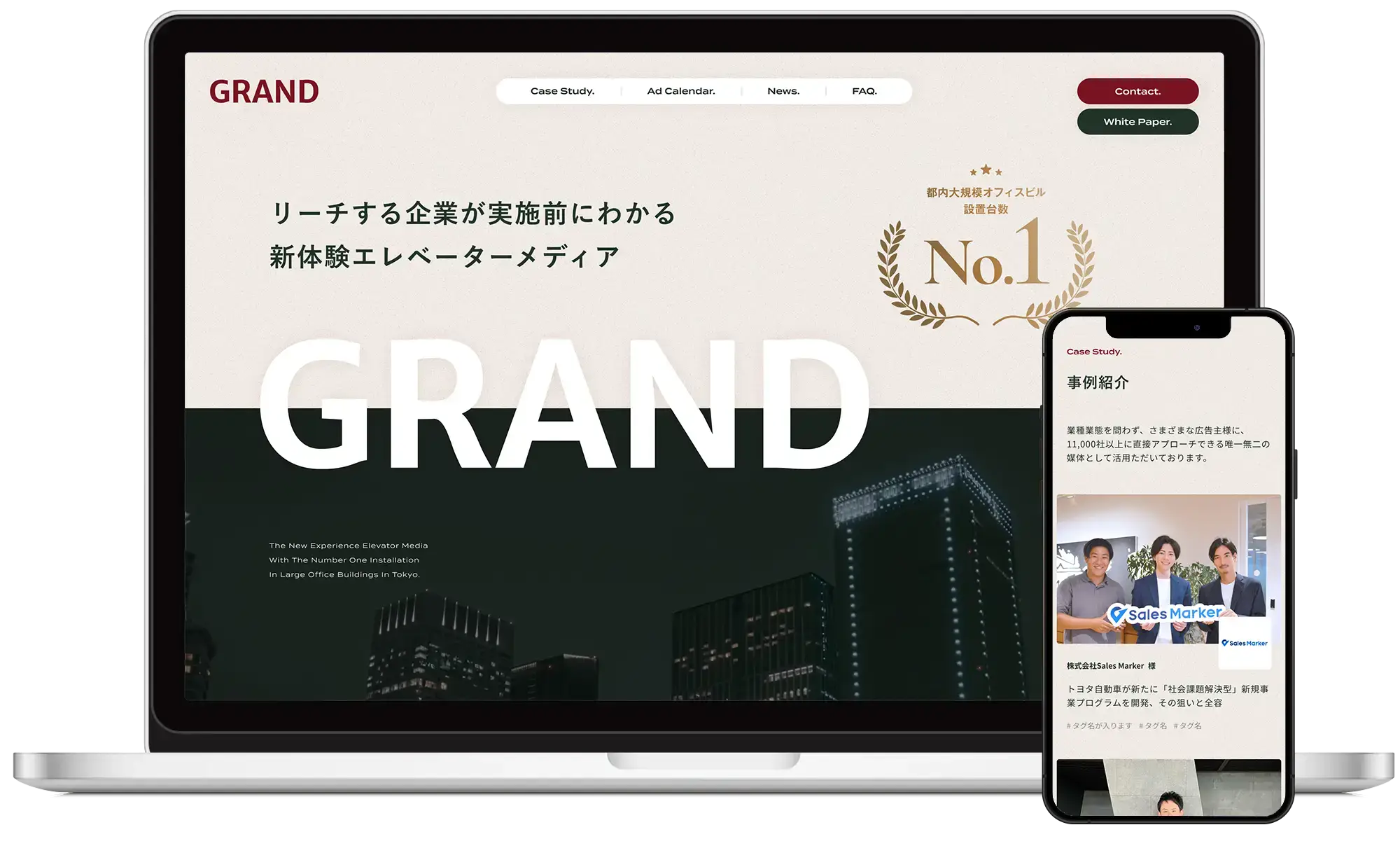 エレベーター広告メディアを開発・運営するGRANDさまのプロジェクトでは、お客さまが直近で控えているプレスリリースに合わせて、サイトをリニューアルしたいとのご要望がありました。