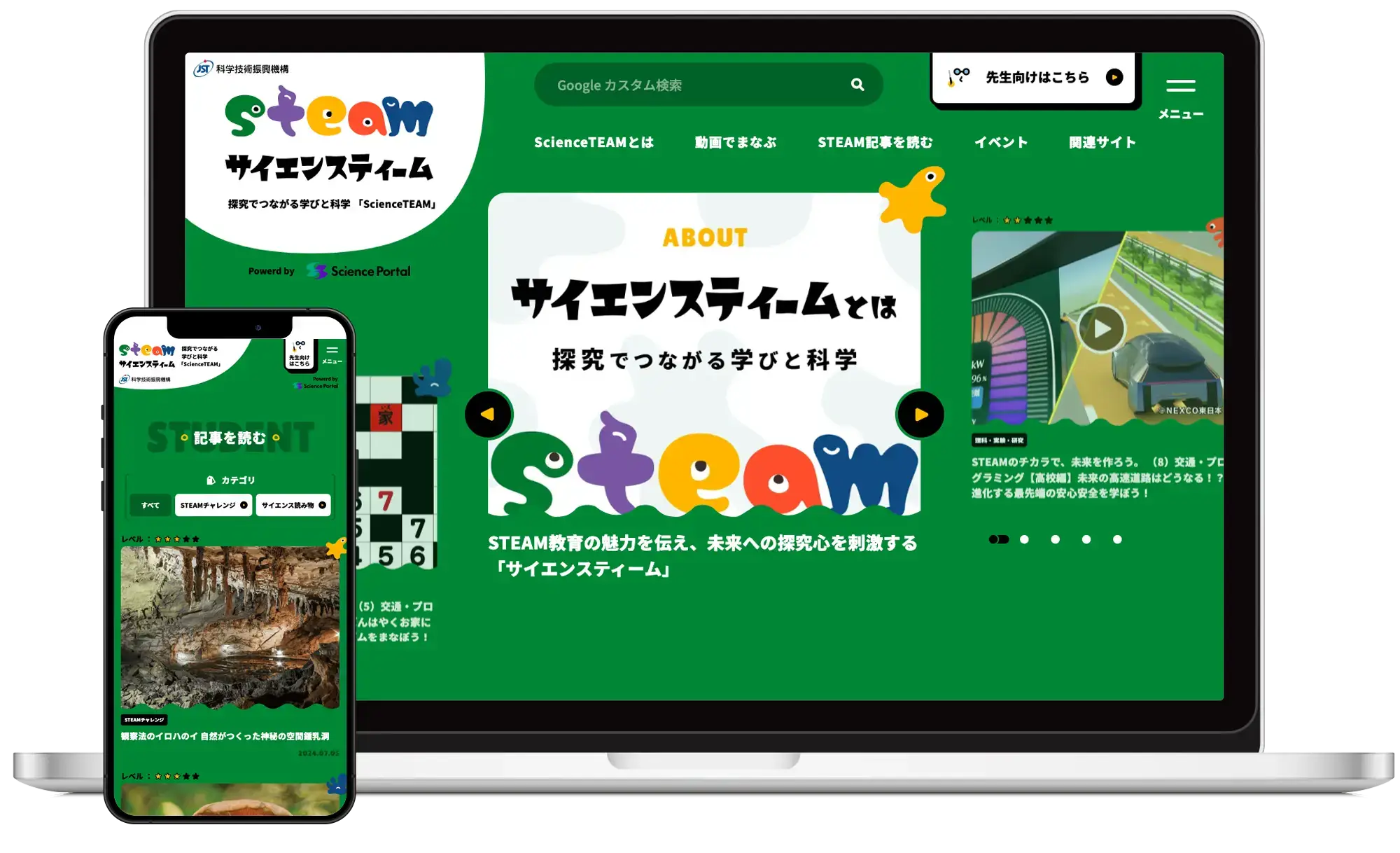 このメディアの目的は、子どもたちにSTEAM教育(科学・技術・工学・芸術・数学の頭文字を組み合わせた教育手法)の魅力を伝え、その普及を促進することでした。お客さまからは、子ども達の学びの「楽しさ」「自由さ」や「多様性」をサイトで表現したいという希望がありました。