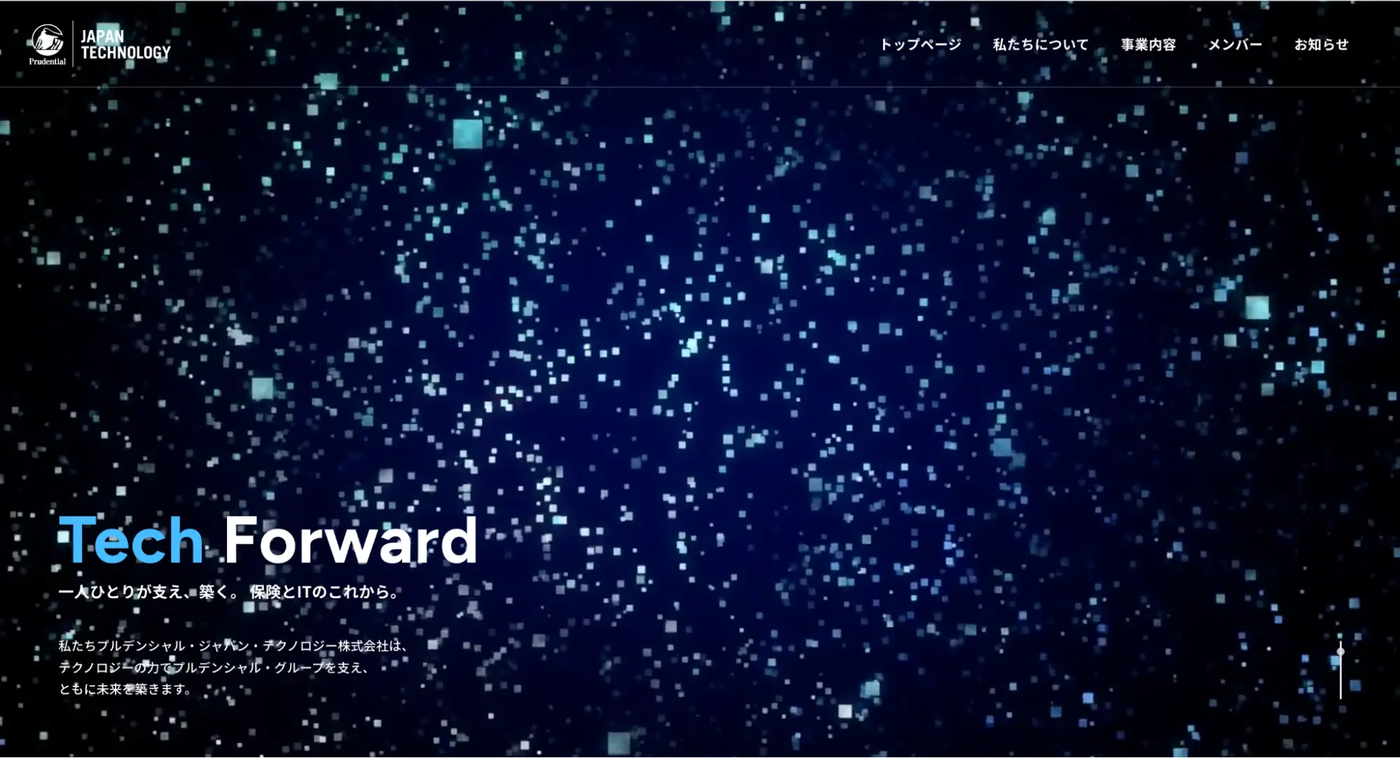 最後に、プルデンシャル・ジャパン・テクノロジーさまの事例をご紹介します。社名変更という大きな節目に合わせ、新しい企業イメージを届けるため、サイトのファーストビューに表示する動画の制作をご依頼いただきました。