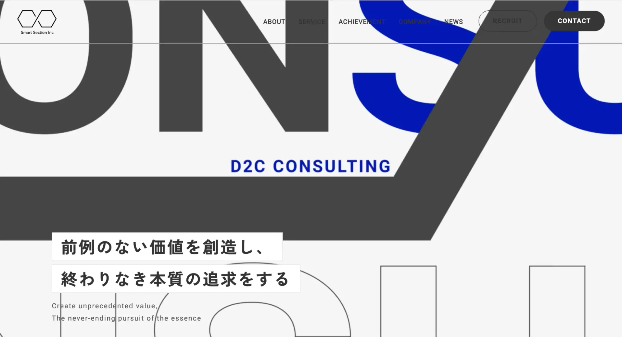 次にご紹介するのは、EC戦略コンサルティングを行うスマートセクションさまの事例です。立ち上げから間もない企業だったこともあり、まず必要だったのは認知度の向上と事業内容を分かりやすく伝えること。そのため、会社の第一印象を大きく左右するサイトのフロントビューに動画を組み込み、印象に残る演出を目指して制作に取り組みました。