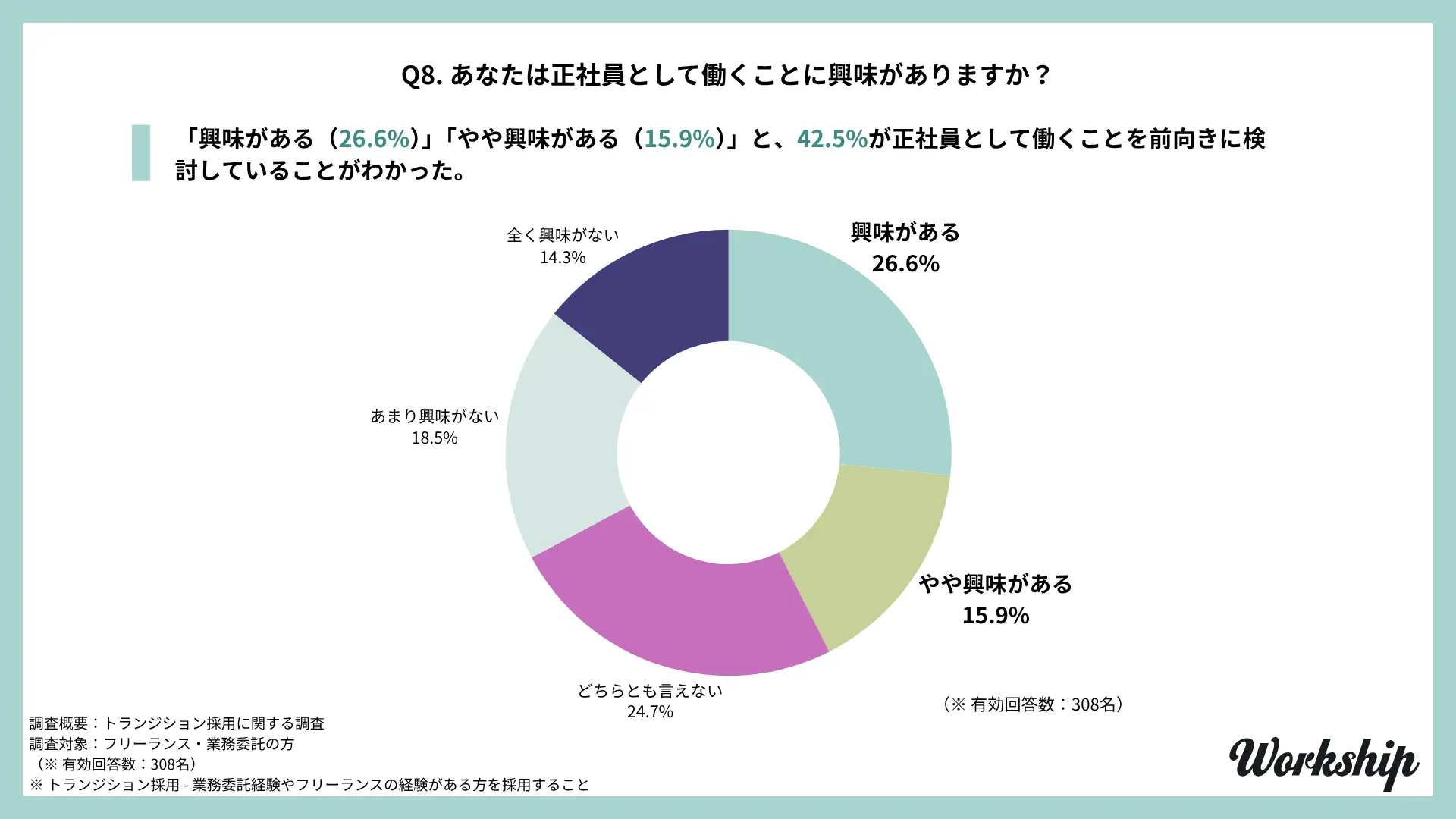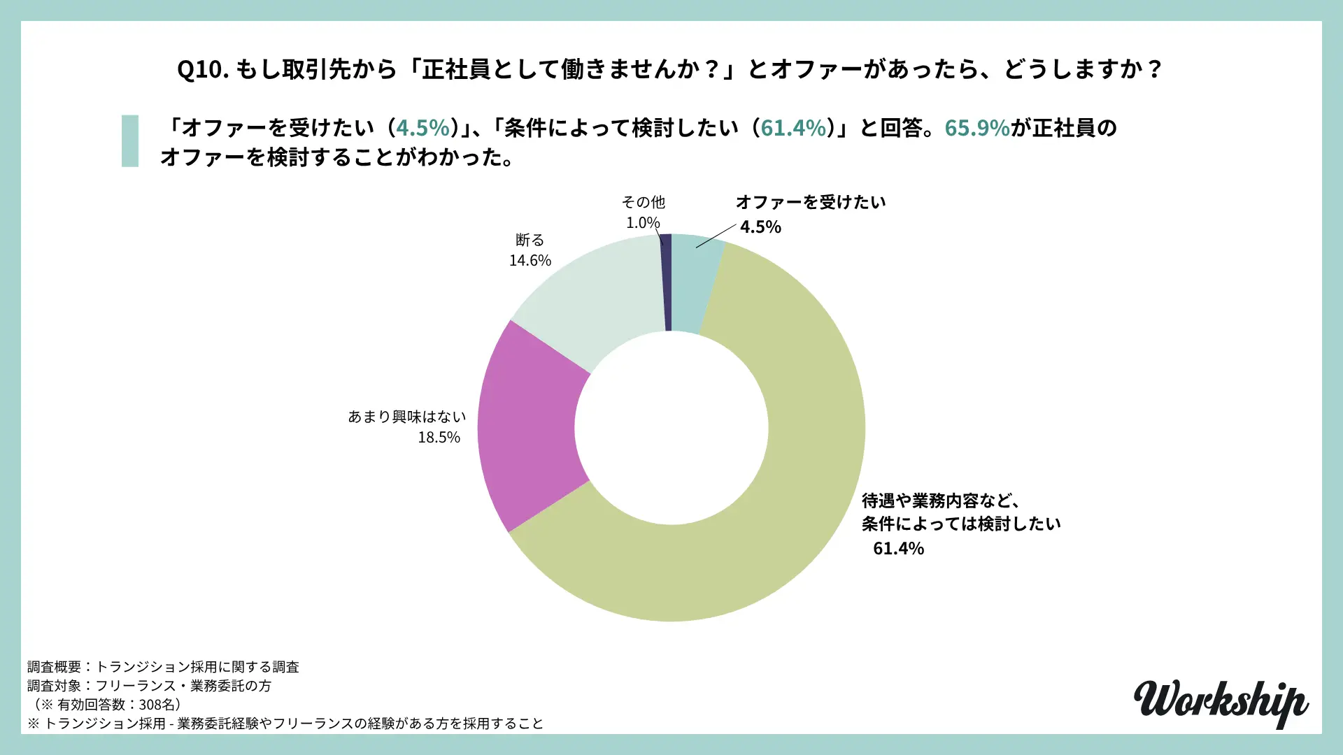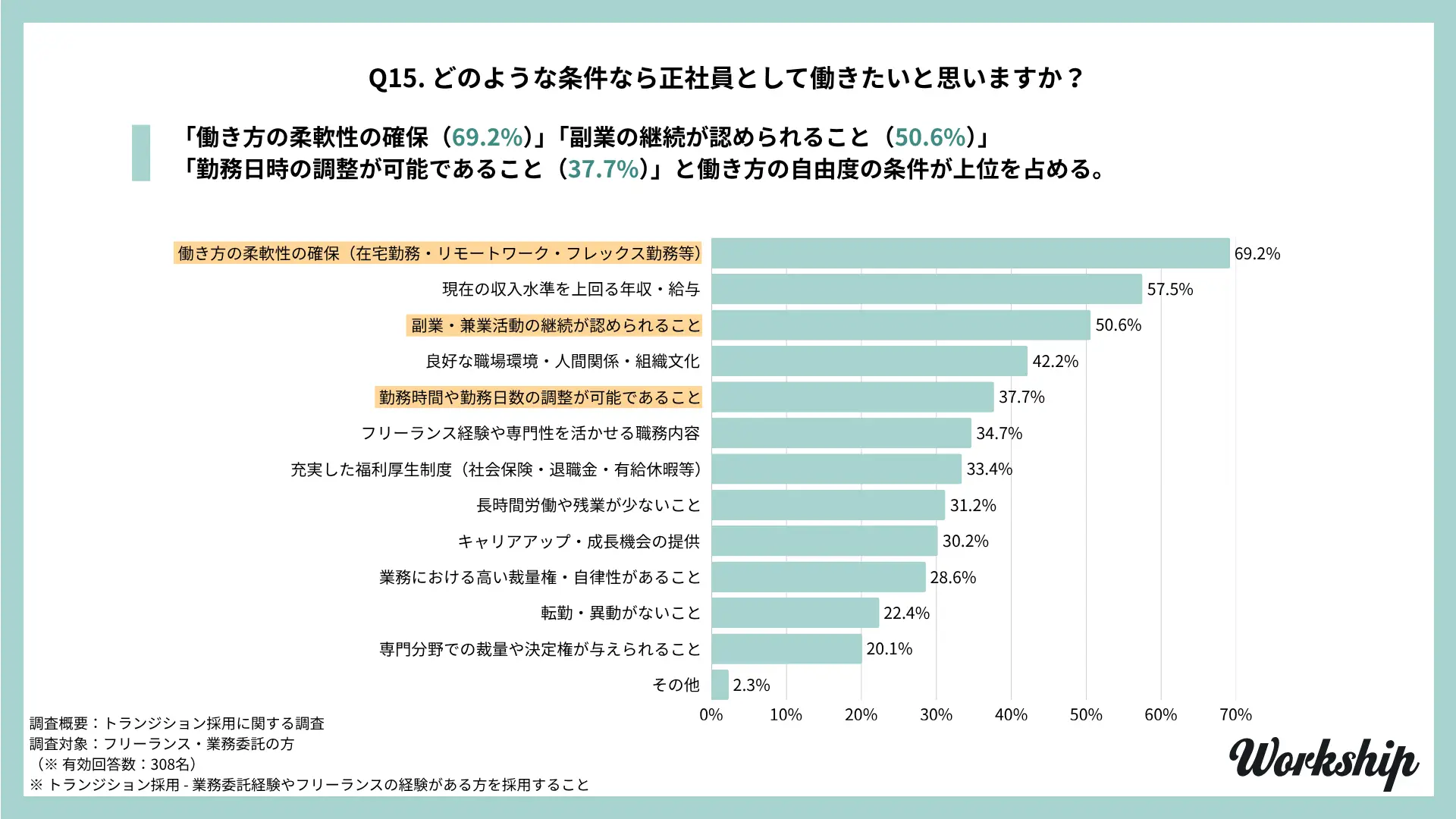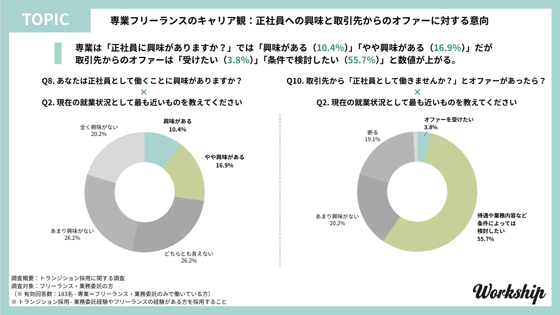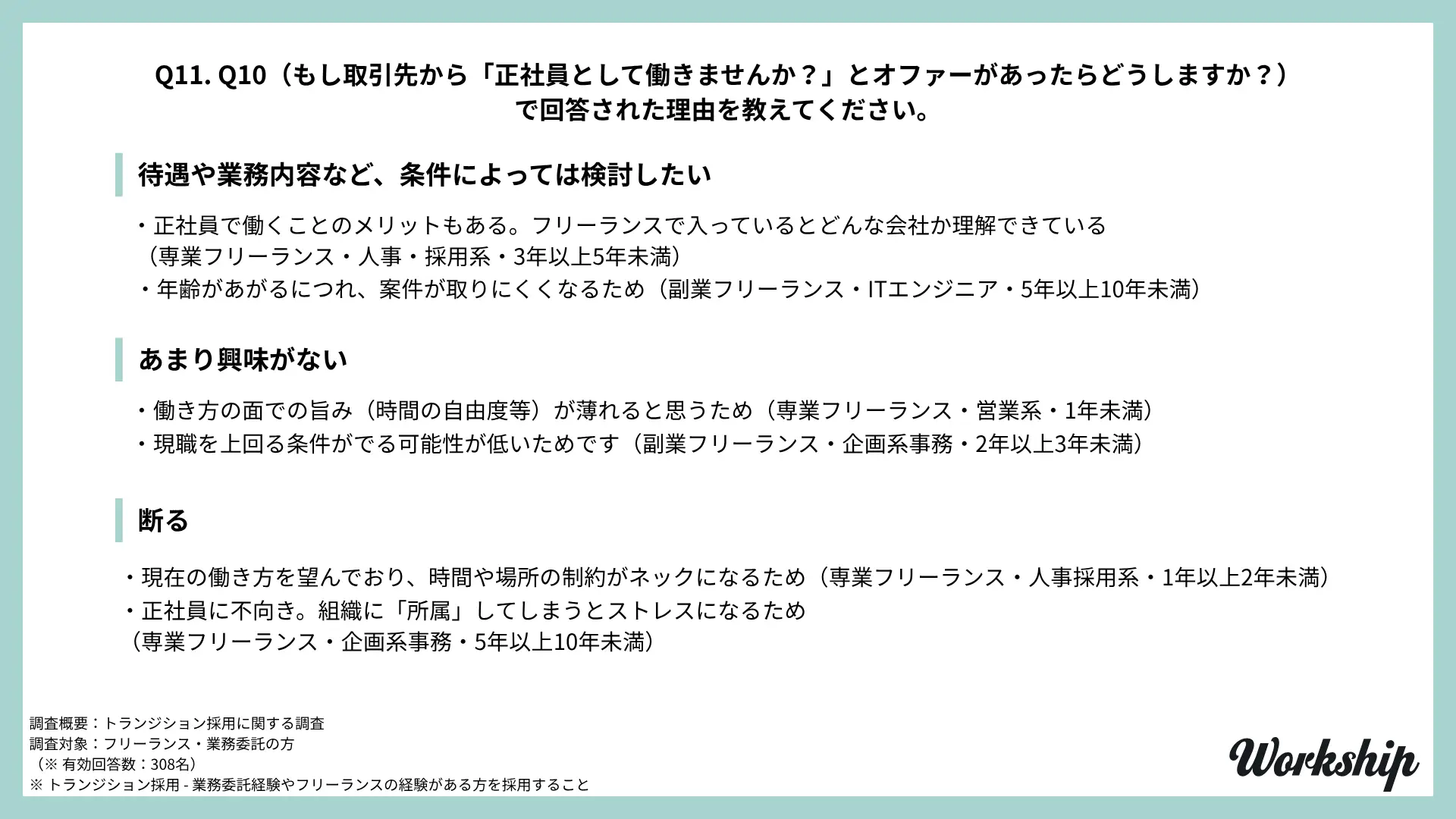 - 調査名:フリーランス・業務委託経験者を対象としたトランジション採用に関する調査(Workship / GIG)