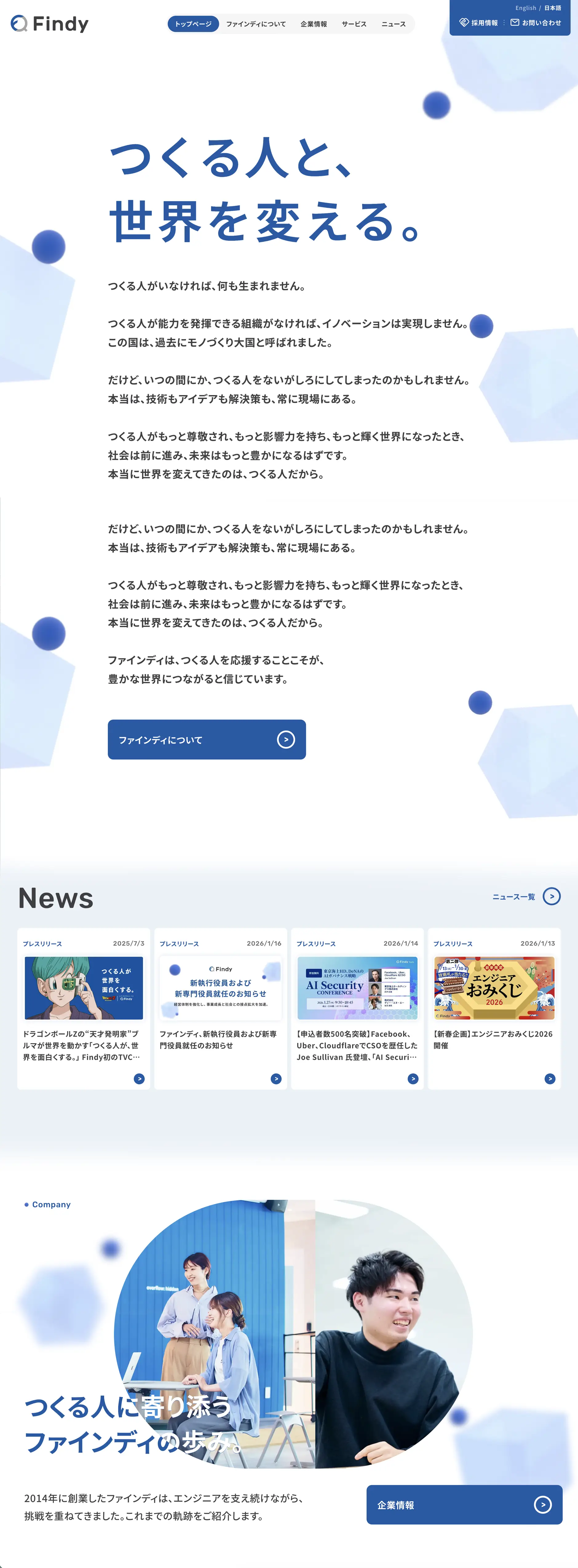 ファインディ株式会社のコーポレートサイトリニューアルを支援しました。