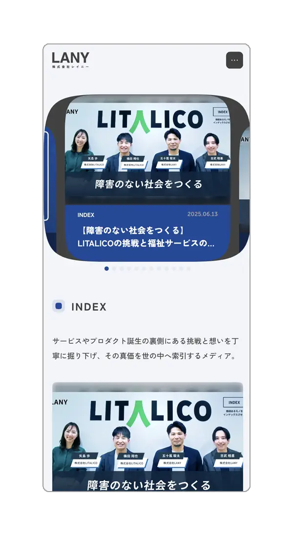 詳細が固まっていない状態からのスタートでしたが、細かなやり取りから具体の部分に落とし込むサポートをしていただきました。経営メンバーの意向を組んだ支援スタンス、温度感や会社らしさを含めて対外的に発信できるサイトになり、プロジェクト全体を通して柔軟なご対応をいただきとてもありがたかったです。サイトトップのデザインや雰囲気を気に入っている社員が多く、SNSでも「LANYらしさが伝わる」と好評でした。リブランディングのコンセプトとデザインが合っていたからこその評価だと感じています。