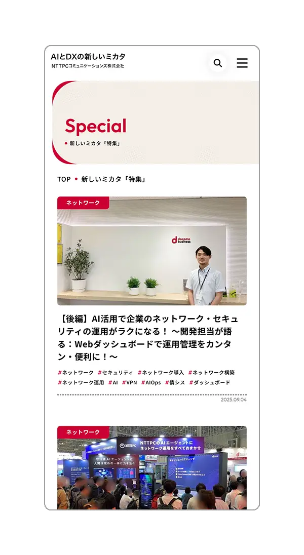 NTTPCコミュニケーションズ株式会社様が運営するメディアサイト「AIとDXの新しいミカタ」の制作をご支援させていただきました。